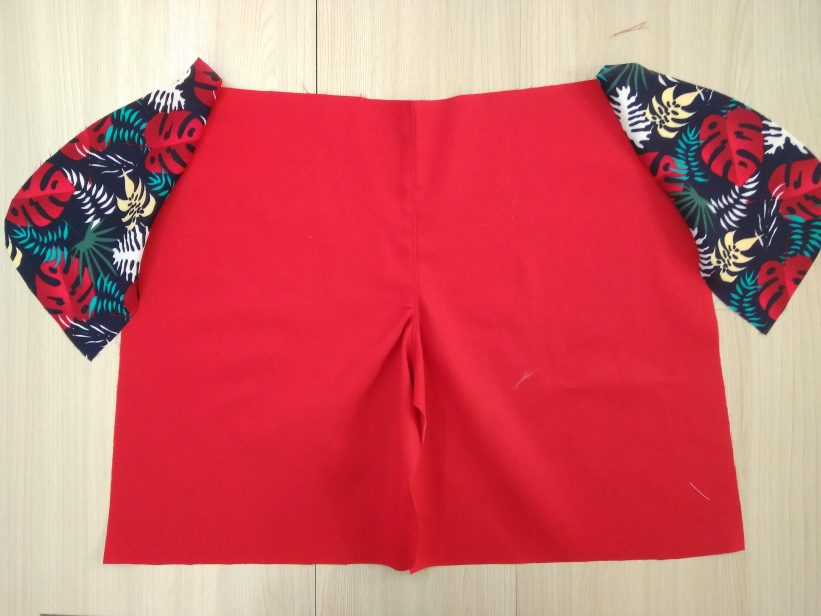 Выкройка, которая дана выше раскладывается на ткань в один слой и кроится в виде прямоугольника. Единственный шов – средний шов по спинке. Если по каким-то причинам у вас не получается выкроить с одним швом, можно сделать швы по бокам.