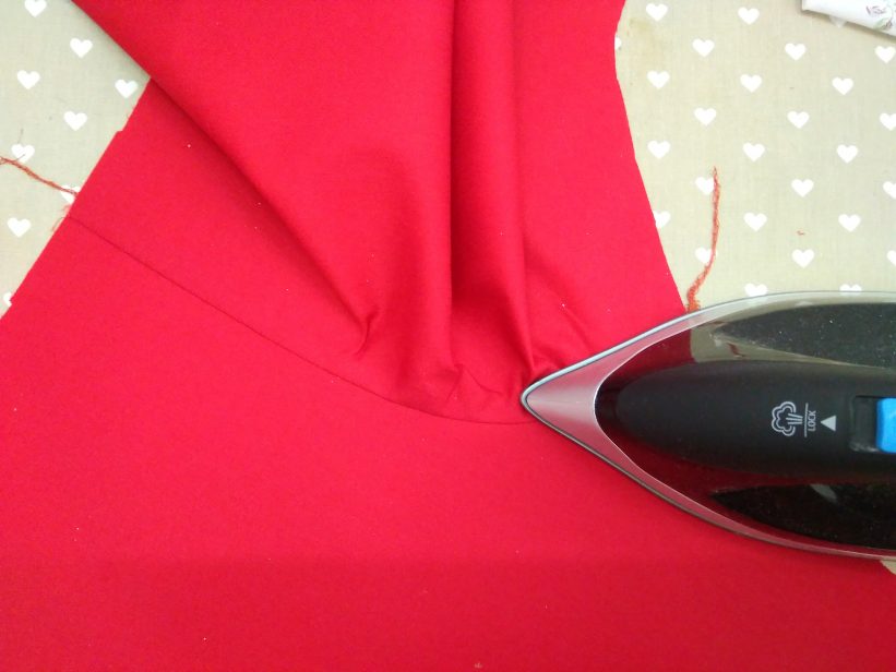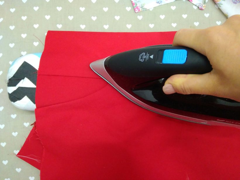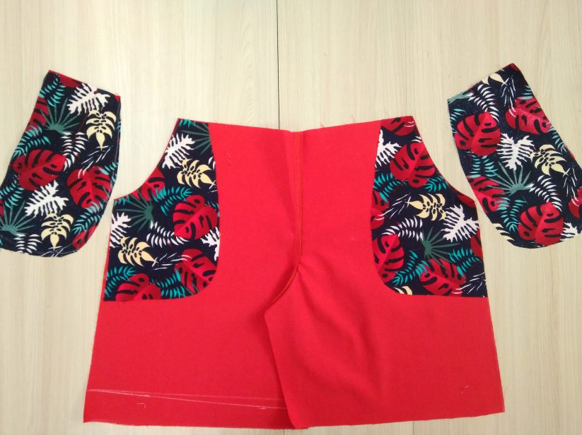 Соедините переднюю часть кокетки с задней частью по боковым швам. Стачайте, обметайте и заутюжьте швы.