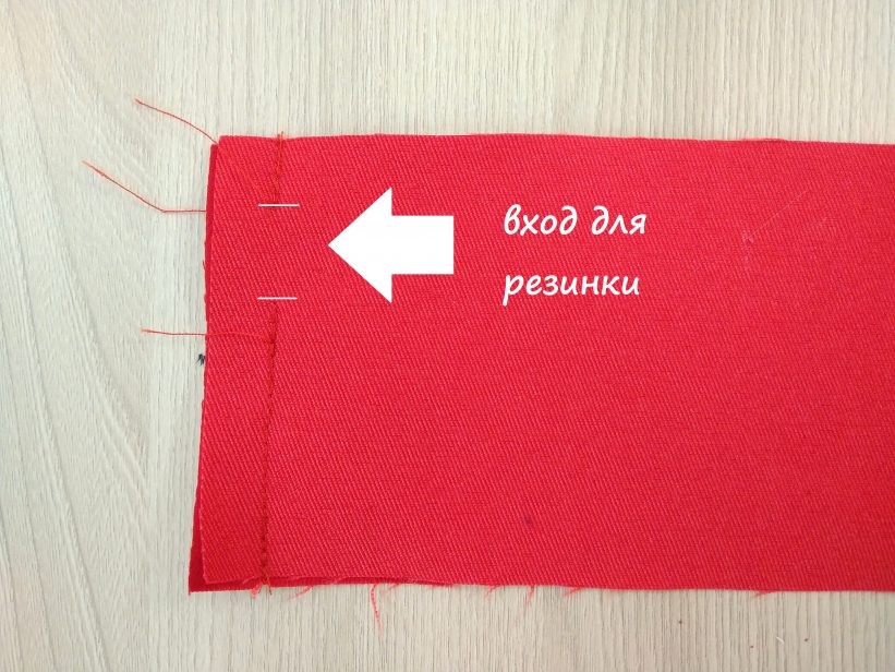 - Причем отверстие для резинки, должно оказаться снизу и быть совмещено со средним срезом на спинке.