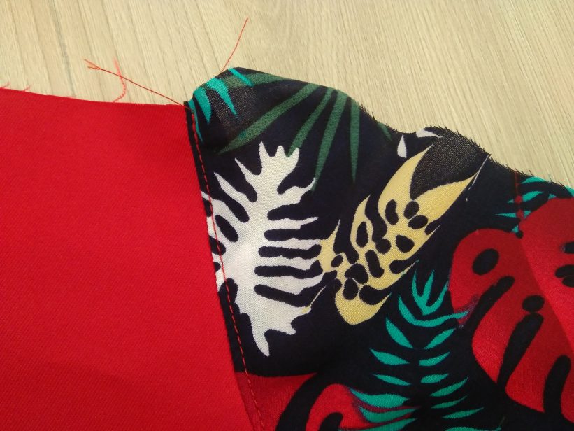Скрепляю детали между собой булавками по боковым срезам. Стачиваю на швейной машинке, срезы обметываю.