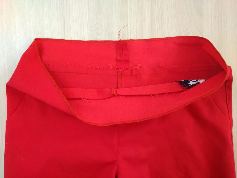 - Пришиваю пояс на машинке, припуск заутюживаю наверх.