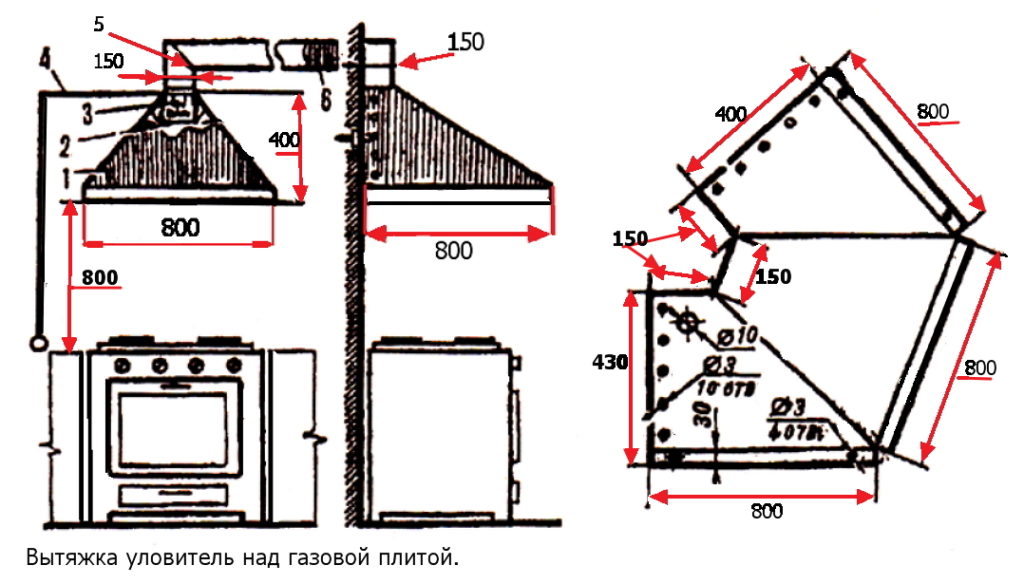 Первым шагом на пути создания вытяжки на кухню из гипсокартона является определение ее размеров. Стоит помнить, что ширина вытяжного устройства должна соответствовать габаритам варочной поверхности. Высота установки воздухоочистителя над кухонной плитой составляет 65 см для газового устройства и 45 см – для электрического.