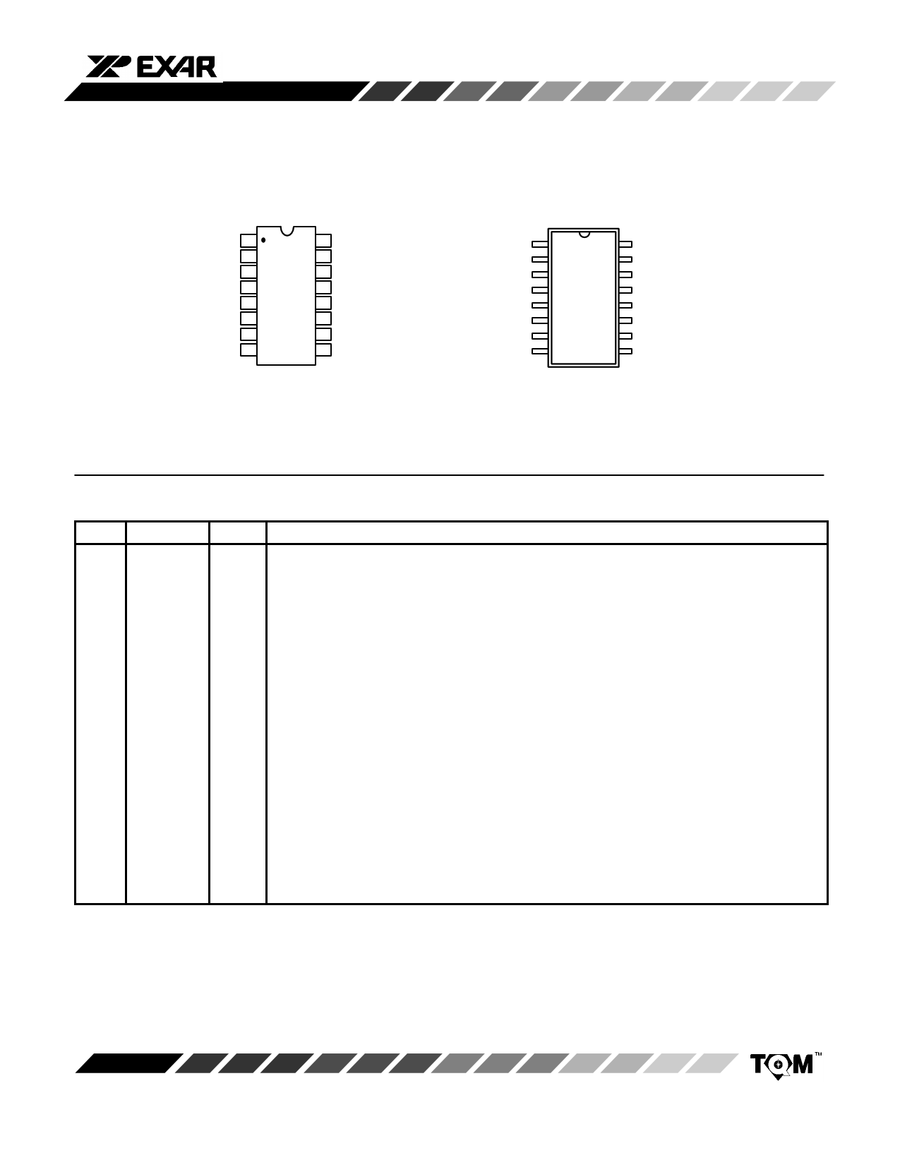 XR-2206 VCC TC1 16 SYMA2 15 SYMA1 14 WAVEA2 13 WAVEA1 12 GND 11 SYNCO 10 BIAS 9 FSKI 16 Lead PDIP, CDIP (0.300”) VCC TC1 16 SYMA2 15 SYMA1 14 WAVEA2 13 WAVEA1 12 GND 11 SYNCO 10 BIAS 9 FSKI 16 Lead SOIC (Jedec, 0.300”) VCC TC1 Sync Output. This output is a open collector and needs a pull up resistor to VCC. Ground pin. |