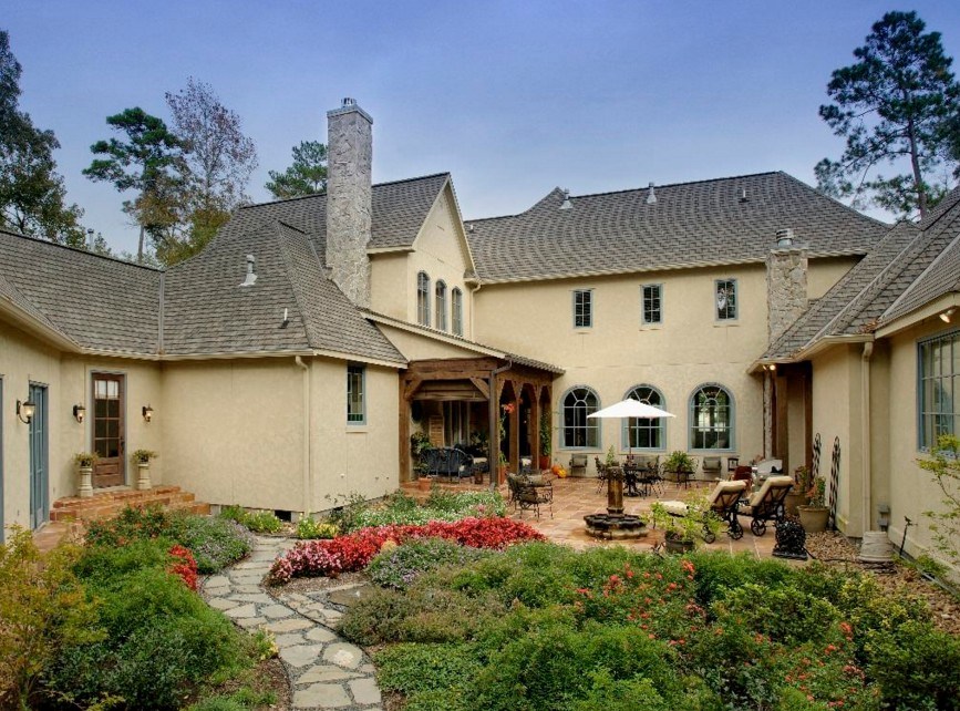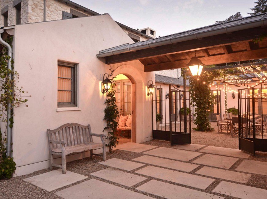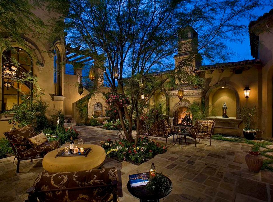 Изначально следует все хорошо продумать, сделав примерный план. Вы смогли бы вымостить с помощью камня определённую площадь во дворе для прогулок в любое время года. Верный интерьер двора выглядит стильно и функционально.