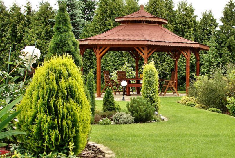 Дополните дизайн заднего двора беседкой с крышей. Этот уютный уголок поможет избавиться от стресса и наладит душевное равновесие.