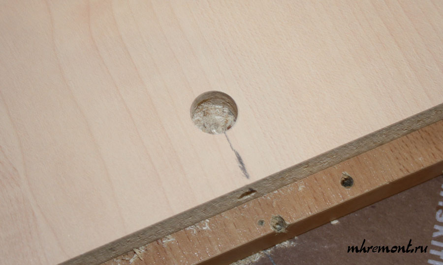 Рис.4. Отверстие для эксцентрика делают сверлом Форстнера диаметром 15 мм