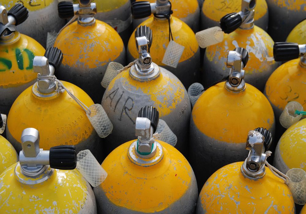 Первый тип — это стальные баллоны. Они тяжелы, довольно прочны и имеют отрицательную плавучесть, что играет на руку при наборе грузов. Но солидный вес накладывает ограничение на то, сколько их можно взять с собой на глубину.