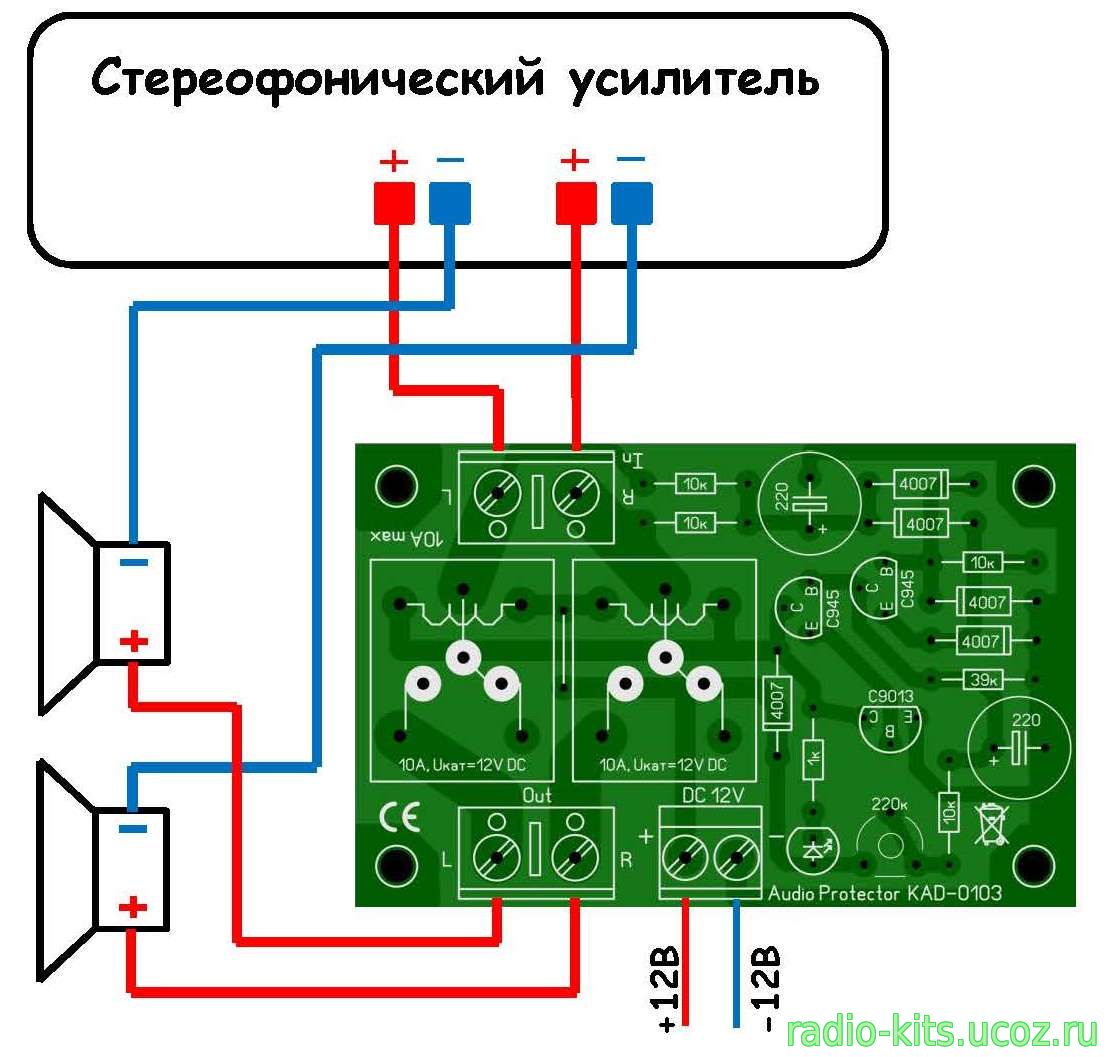 В интернете сейчас представлено огромное количество различных усилителей звука, на любой вкус и цвет, под любые нужны. Как известно, даже самые надёжные усилители имеют свойство выходить из строя, например, из-за неправильных условий эксплуатации, перегрева или неправильного подключения. В этом случае велика вероятность того, что высокое питающее напряжение окажется на выходе усилителя, и, следовательно, беспрепятственно окажется прямо на динамиках акустической системы. Таким образом, вышедший из строя усилитель утягивает за собой «в мир иной» подключенную к нему акустическую систему, которая может стоить гораздо дороже самого усилителя. Именно поэтому крайне рекомендуется подключать усилитель к колонкам через специальную плату, которая называется защитой акустических систем.