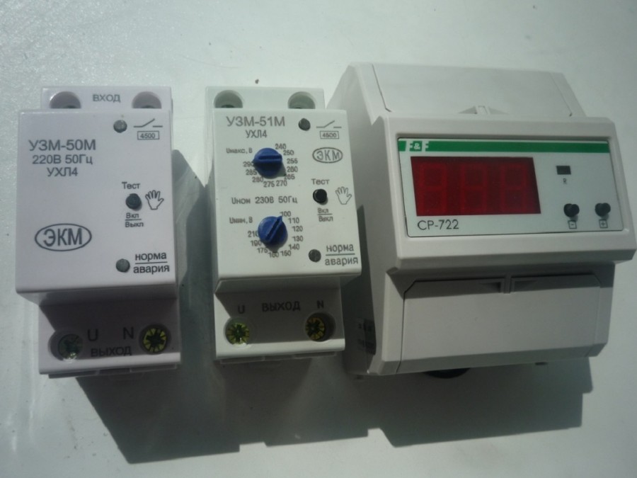 Это небольшое устройство, так же как и реле, контролирует скачки напряжения в сети. Но его монтируют сразу с УЗО (устройством защитного отключения). Если датчик выявляет нарушение сетевых параметров, он провоцирует утечку тока. В этом случае УЗО обнаруживает её и отключает питание на дом в аварийном режиме.