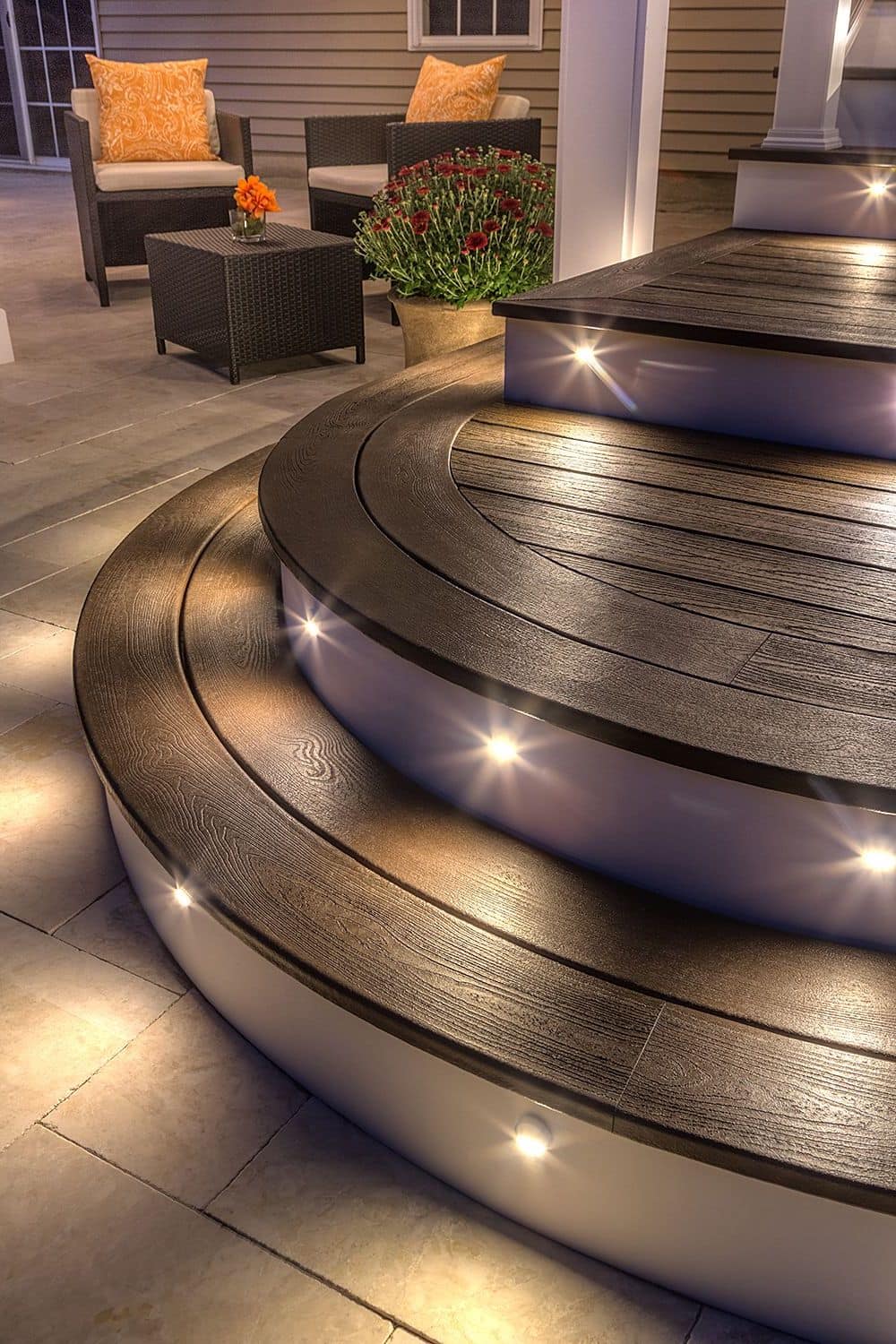 За счет мягких полукруглых очертаний, сооружение отличается гармоничным внешним видом и считается менее травмоопасным. Такое крыльцо может уравновесить дом, имеющий сложную форму или большие габариты.