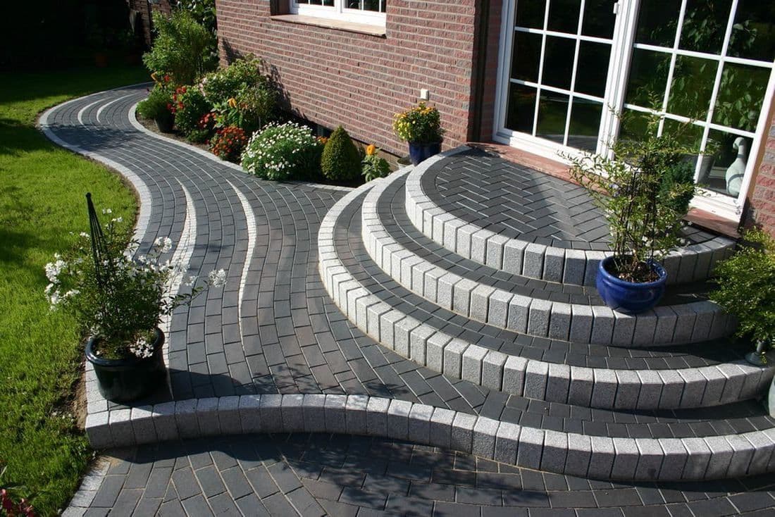 Интересное стилевое решение оформления крыльца из бетона и кирпича