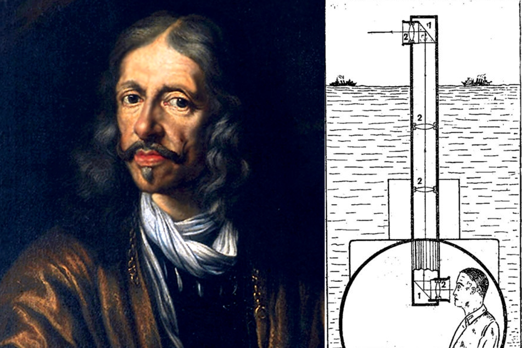 Иоганнес Гевелий описал ранний перископ (который он назвал «полемоскопом») с линзами в 1647 году в своей работе «Selenographia , sive Lunae descriptio» . Гевелий увидел применение своего изобретения в военных целях.