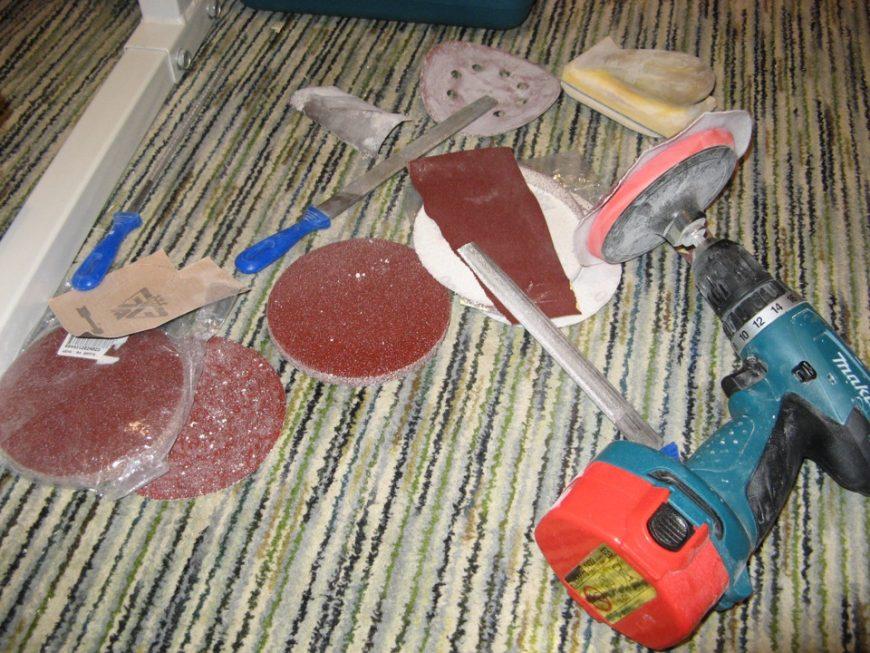 - шуруповерт или не слишком мощная ручная дрель с регулируемым количеством оборотов;