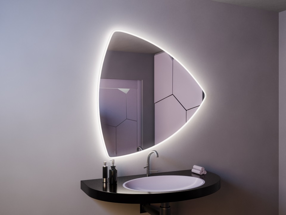 Подобные модели становятся главными элементами интерьера, оживляя его и делая более запоминающимся. Встроенная подсветка делает их более эффектными. Чаще всего такие зеркала можно наблюдать недалеко от нестандартных предметов: асимметричных раковин, ванн и т. п.
