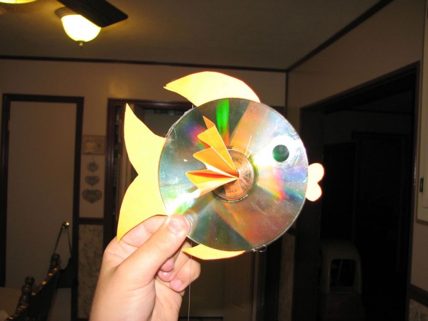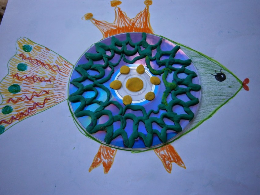 Остается между выше рта наклеить глаза. Рыбка готова!