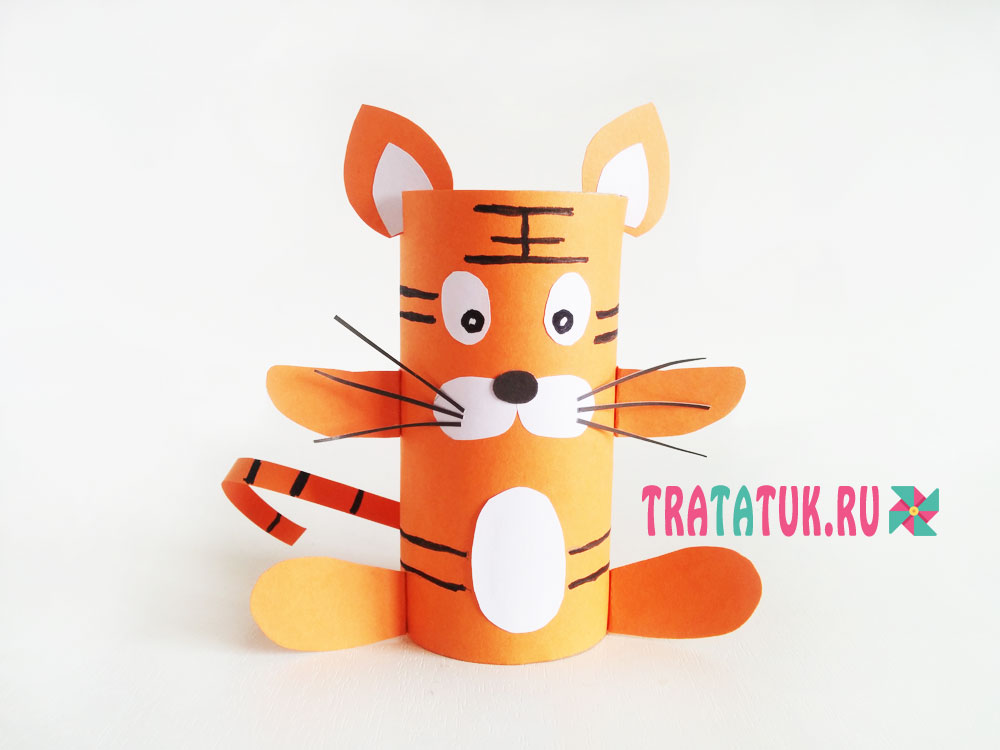 Тигр из втулки от туалетной бумаги, или из любого рулончика, как и все другие поделки из этого материала, выглядит интересно и ярко, а делать его легко и быстро.