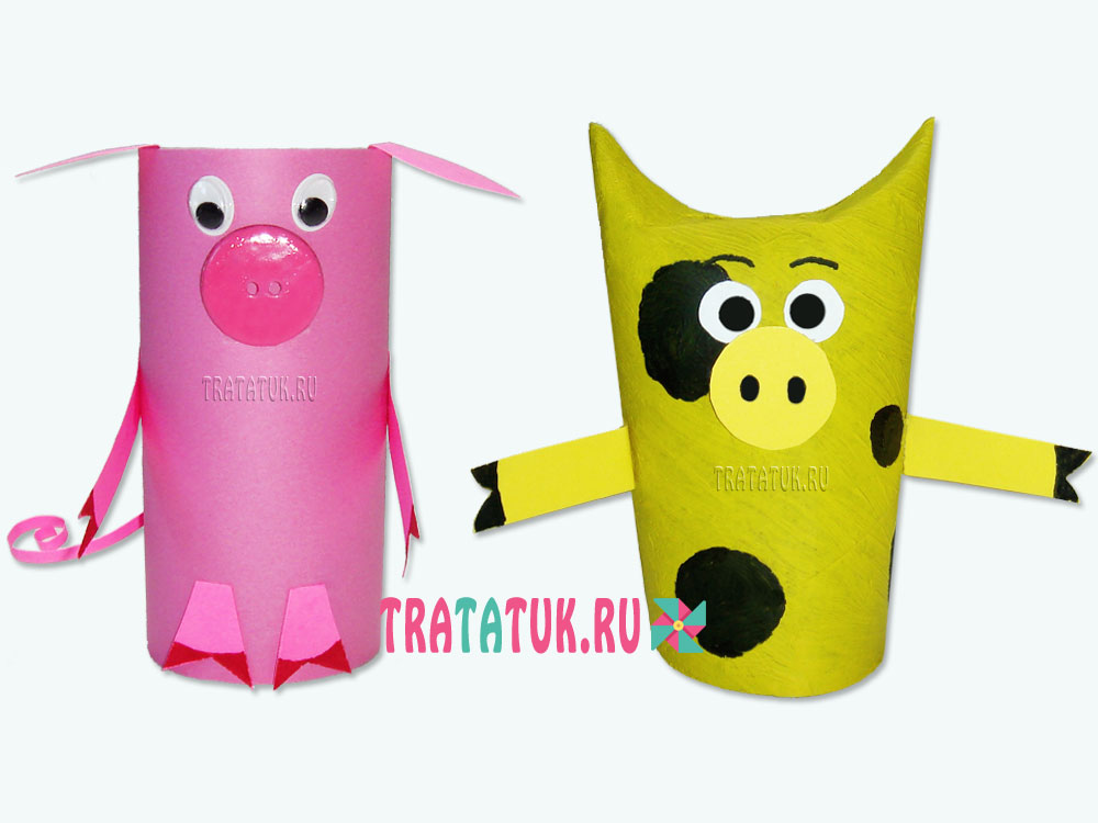 В обзоре 2 способа создания свинок, хотя и это еще не предел. Вариаций множество, как в цвете, так и в способе обработки втулки. И, конечно, вместо втулки можно вполне успешно использовать обычные рулончики, то есть, свернутую в цилиндрик бумагу.