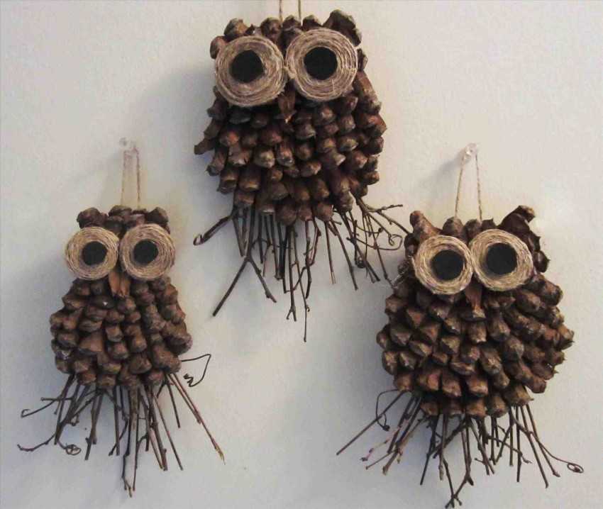 Прекрасные поделки рождаются из несъедобных компонентов, как шишки или листья. Зверьки из природного материала, пожалуй, выглядят наиболее естественными.