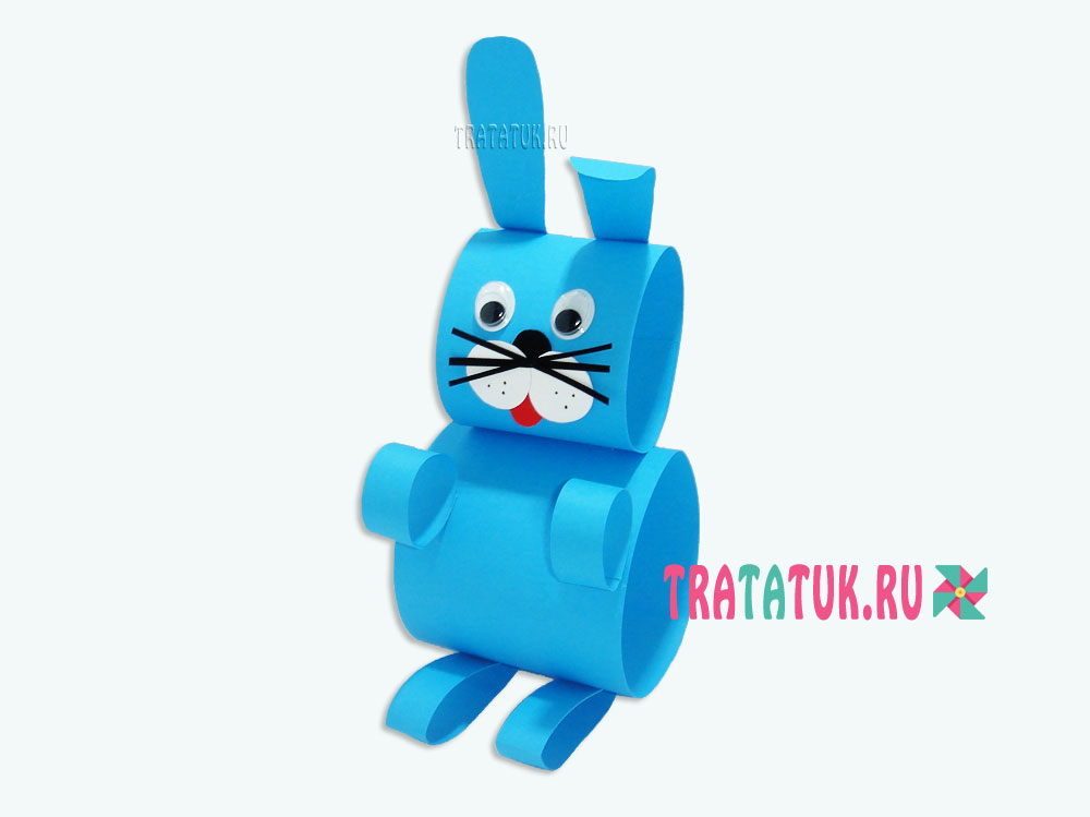 Заяц из бумажных рулонов практически полностью состоит из свернутых в рулончики полосок бумаг. Эта техника легкая и полезная для детей.