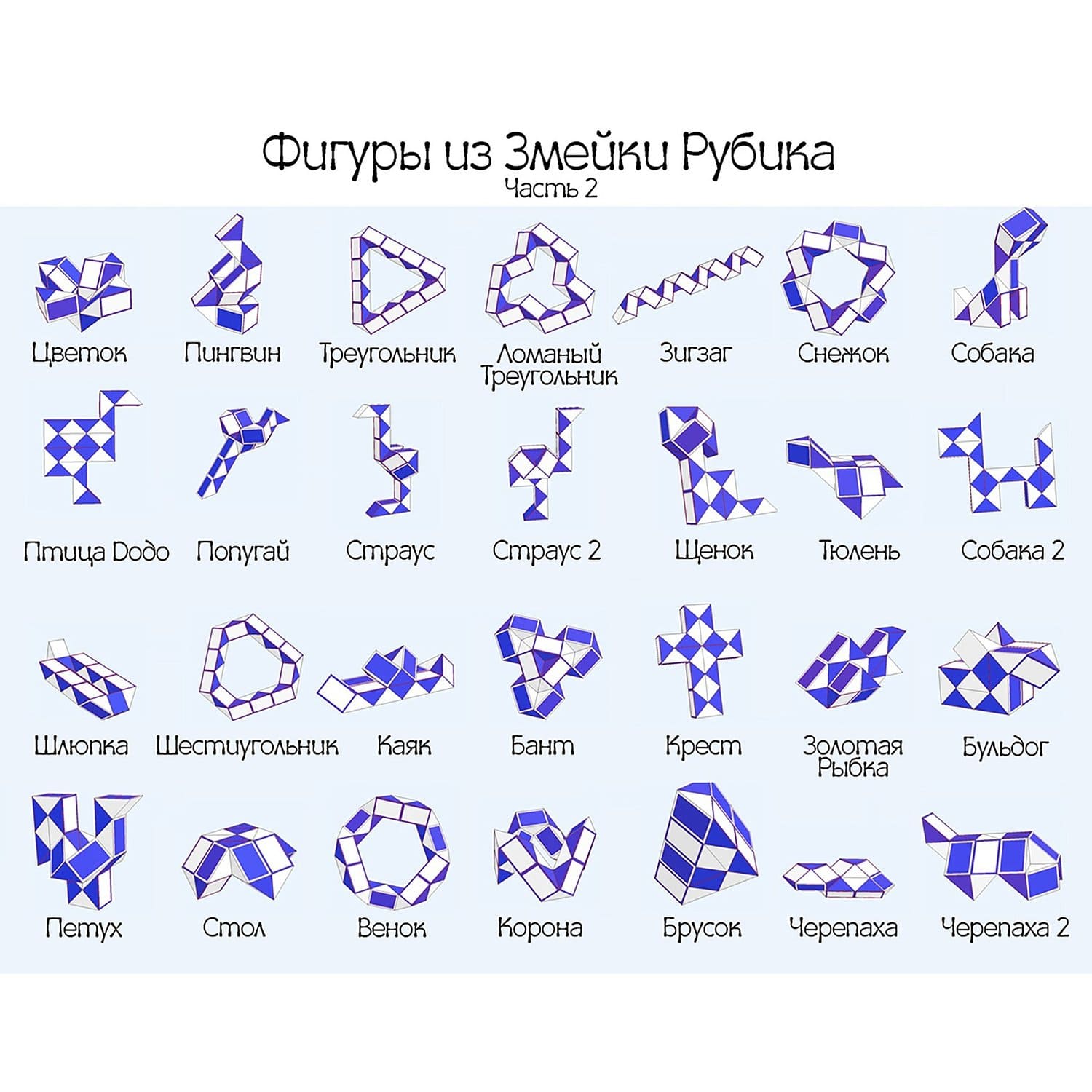 любит все накрученное нами разбирать и превращать в бесформенность!В Змейке самое интересное — то, что из нее получается. Так что меньше слов, больше дела) Перейдем к практике — фигуры из Змейки Рубика (схемы, алгоритмы, видео-уроки отсутствуют, просто фото ). Что можно собрать из Змейки Рубика