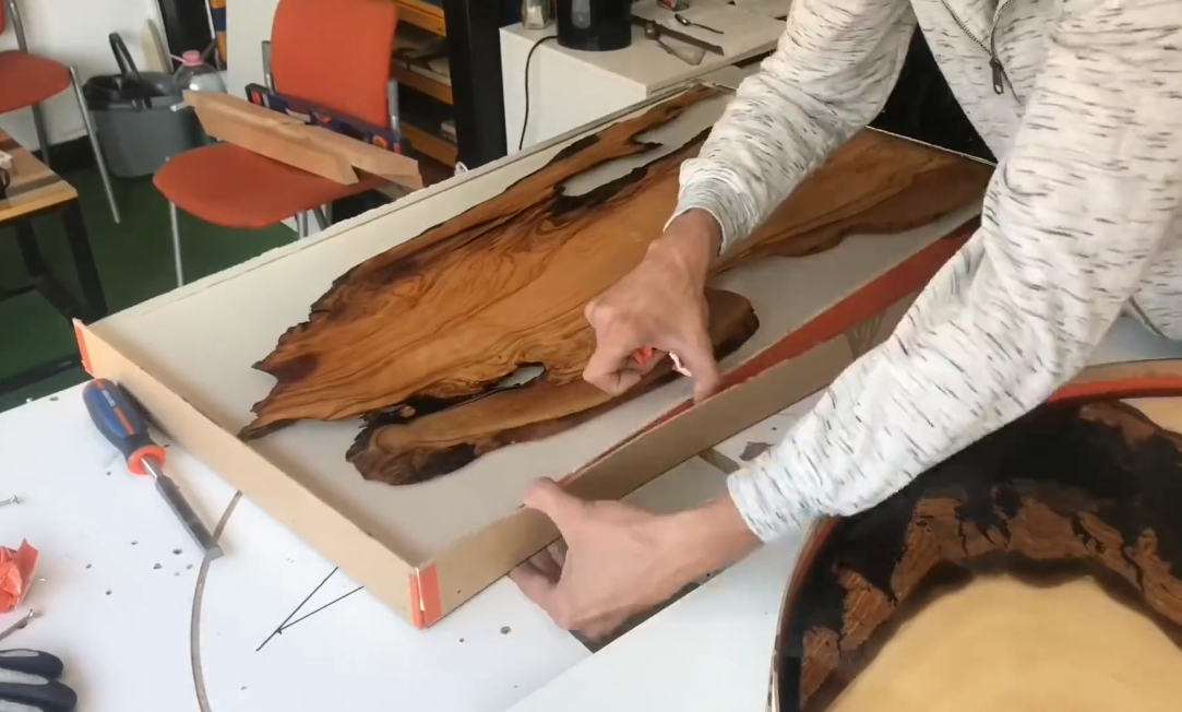 Первым делом приготавливается форма, куда будет заливаться состав. Для этой цели использует любые виды гладких листов, они делаются выше толщины деревянных частей, соединяют их между собой герметиком, тщательно закрыв место стыков, чтобы смола не вытекла через них.