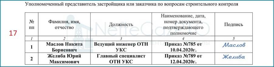 Заполнение раздела производит лицо от подрядной организации, осуществляющее контроль за работами на объекте.