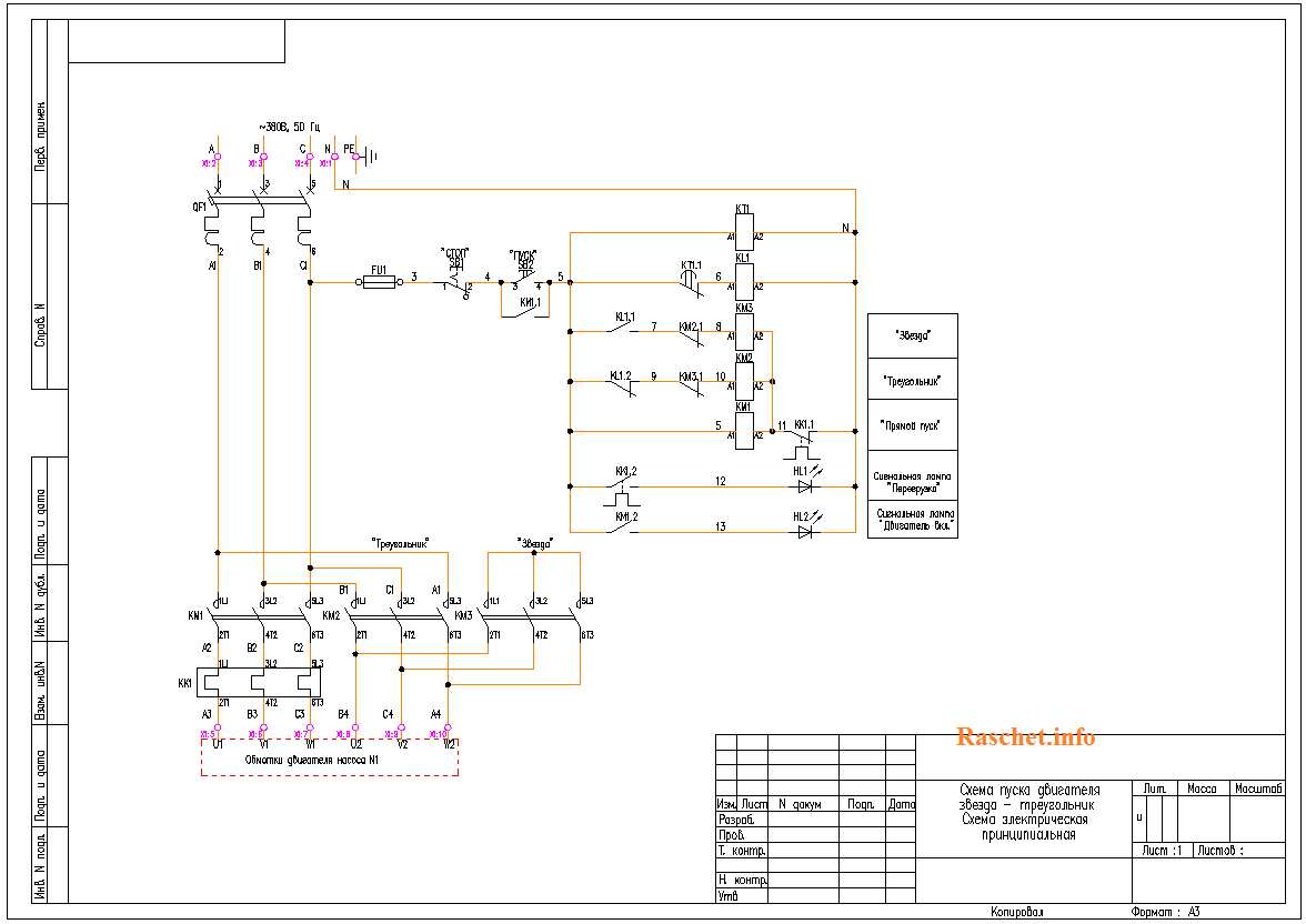 Схема пуска двигателя звезда-треугольник в формате dwg